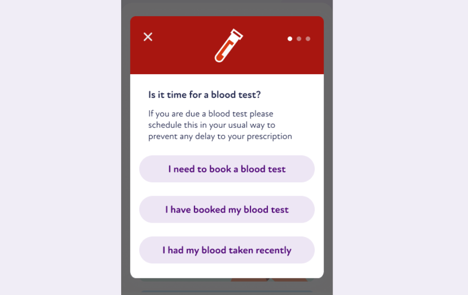Our blood monitoring service was developed in partnership with an NHS trust seeking to increase staff capacity. After experiencing multiple cases of prescription backlogs and delayed medication, a digital solution was needed to keep patients up to date with their blood testing requirements.